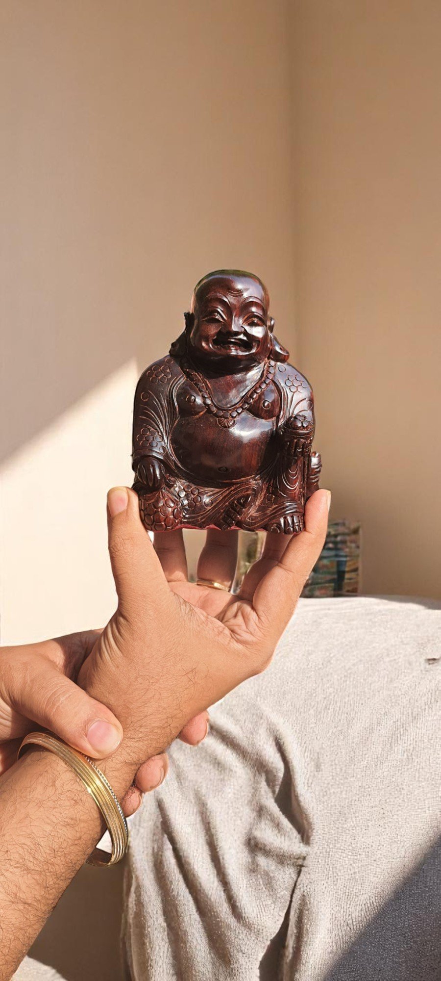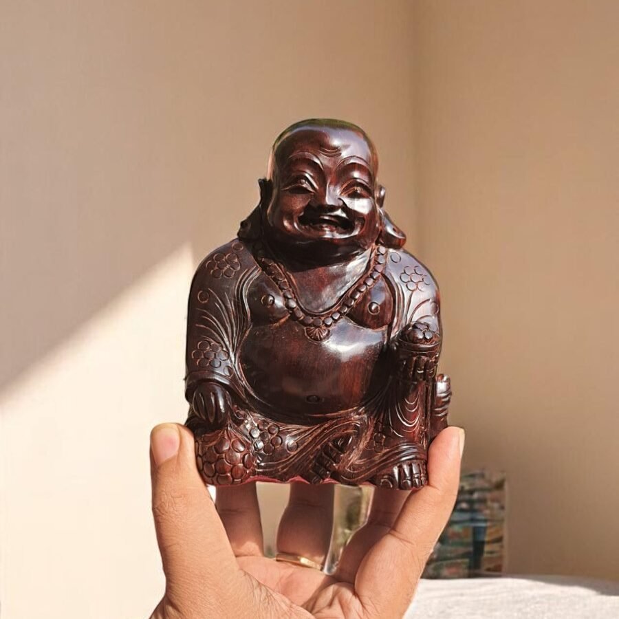 • Material: Hand-carved from polished wood, likely rosewood or another fine hardwood.